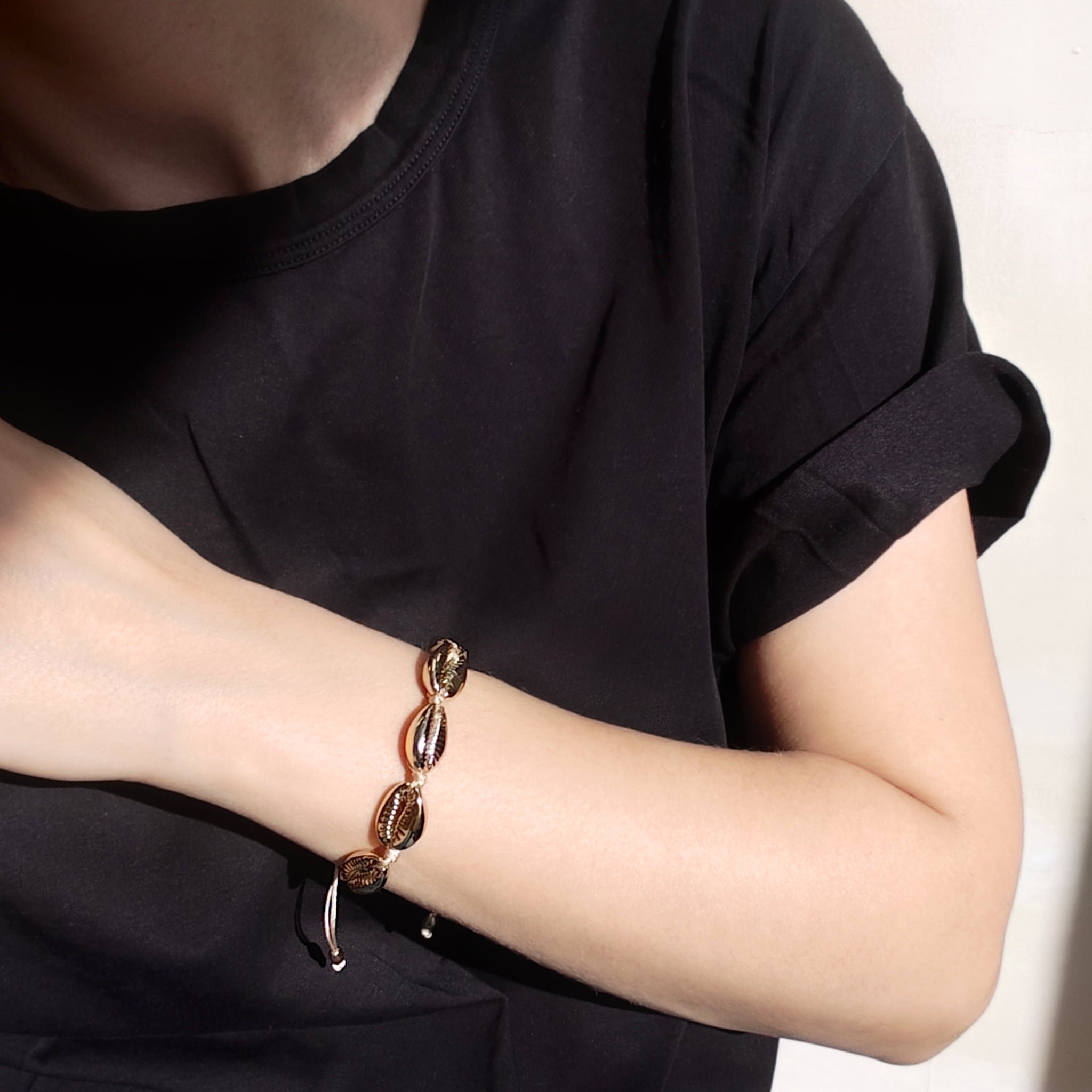 Annita Woven Gold Shell Charm Bracelet
