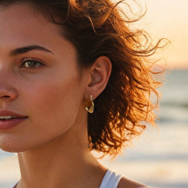 Eliana Hoops plated in 18 K Gold for a long-lasting brilliant finish. They are the perfect addition to a casual look if you want to dress up simple jeans or a t-shirt. Twisted wave creates an elegant and classic feel.