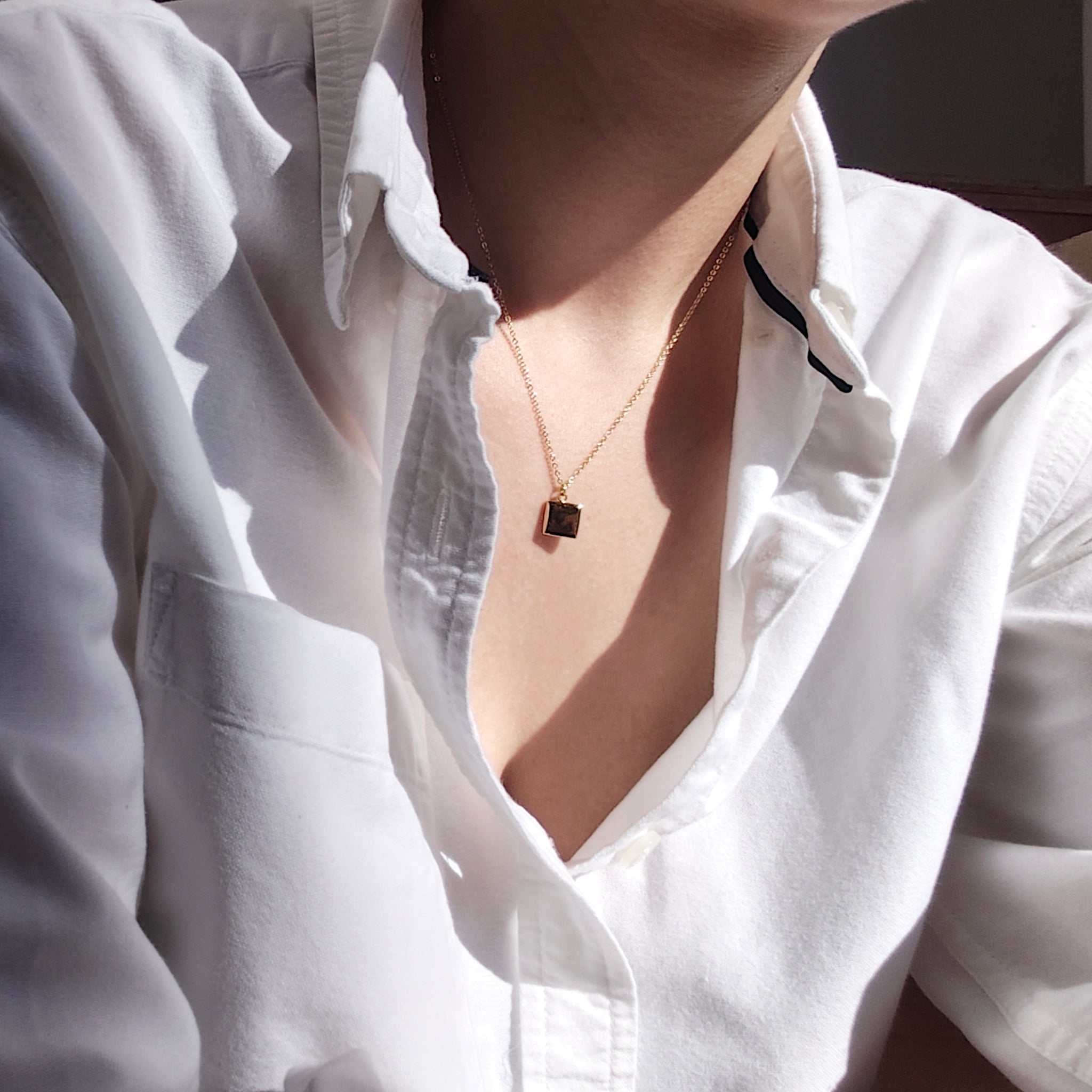 Un simple collier à chaîne géométrique avec un pendentif de forme carrée est l'une des pièces d'une garde-robe de bijoux essentielle. Superposez-le avec différents colliers ou complétez-le avec des boucles d'oreilles géométriques. Ce collier donne de la place pour le style comme vous le souhaitez et se marie parfaitement avec n'importe quelle tenue.