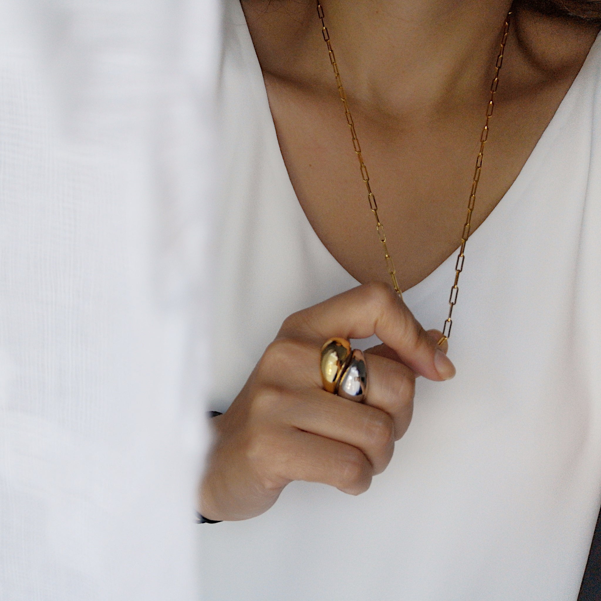 When one statement ring is enough - this is a ring to go for. With this dome ring in Sterling Silver with 18 K Gold Plating even your pajamas will be stylish. Adjustable size gives a unique way to anchor any finger. This ring will make an accent and hold people's eyes around, no matter how you style it. You will simply never want to take it off.